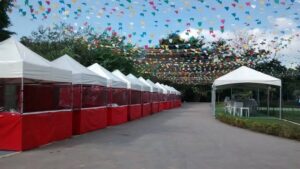 Sua montagem leva apenas alguns minutos e não exige grandes intervenções no solo. Além disso, conta com excelente estabilidade e capacidade de fixação segura, sendo uma ótima opção para eventos com múltiplas áreas técnicas ou funcionais.
